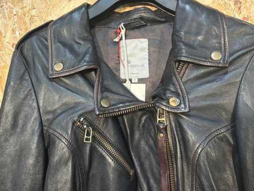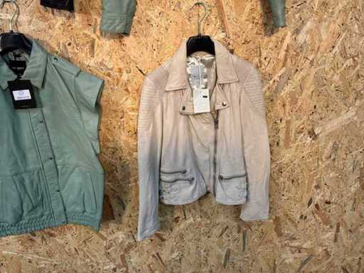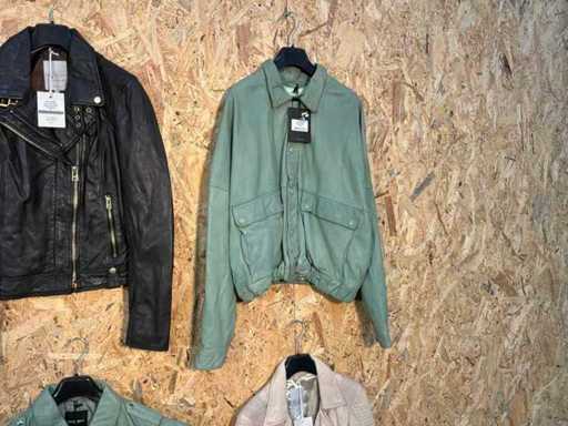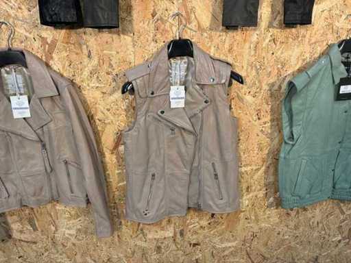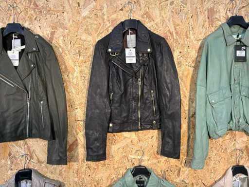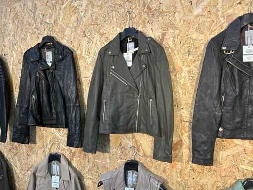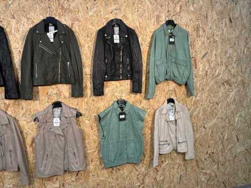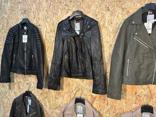 Diverse dames leren jassen en vesten in verschillende modellen, kleuren en maten. Inclusief kledinghangers. Mochten erop de items beveiligingstags zitten worden deze nog verwijderd voor de uitleverdag.