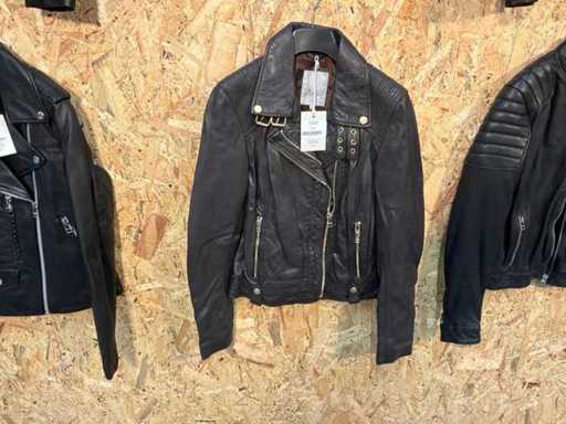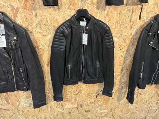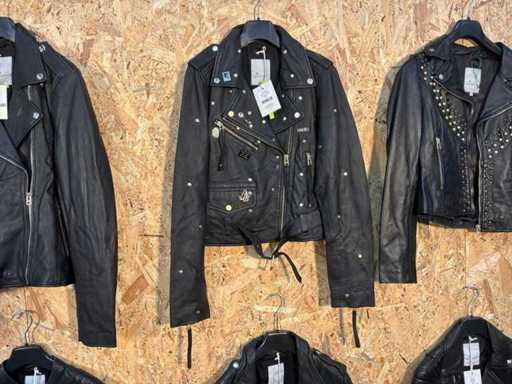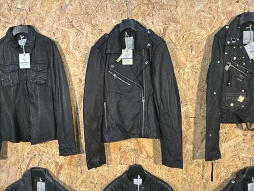 Diverse heren en dames leren jassen en vesten in verschillende modellen, kleuren en maten.