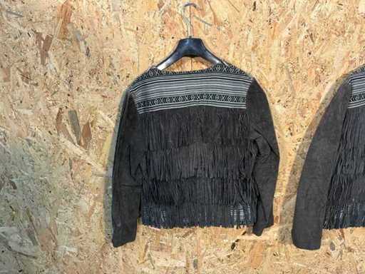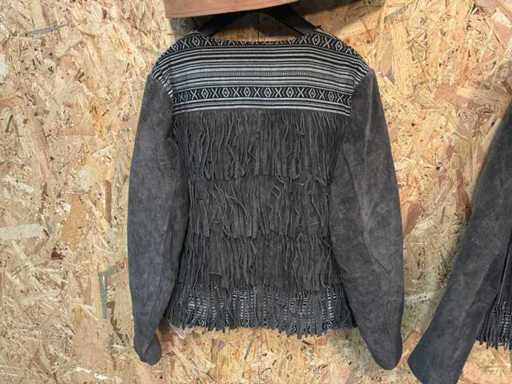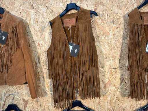 Diverse leren dames vesten en jackets in verschillende modellen, kleuren en maten.