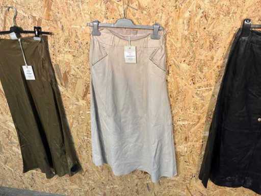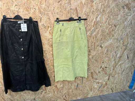 Diverse leren dames rokken en shorts in verschillende modellen, kleuren en maten. Inclusief kledinghangers. Mochten erop de items beveiligingstags zitten worden deze nog verwijderd voor de uitleverdag.