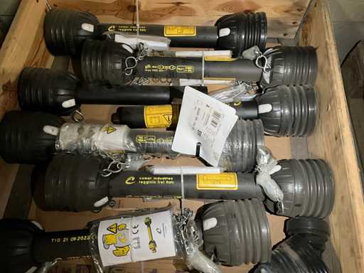 6 aftakassen comer type T10*510mm zonder gaffels, 1 aftakas gopart PTO40*710mm, inclusief aftakas profielbuis Bondioli&Paveis S7 (lengte 3000 mm), betreft ongebruikte producten, Let op! zonder pallets of palletranden