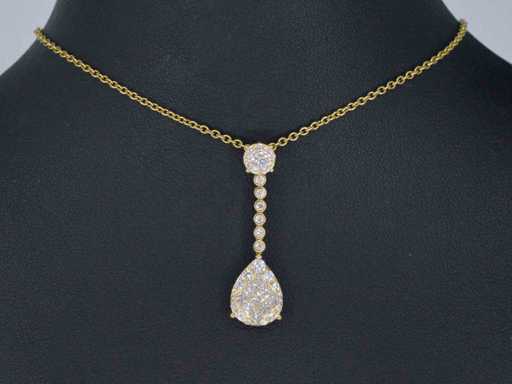 Gouden druppelvormige hanger briljant en princess diamanten