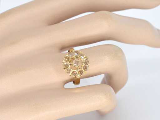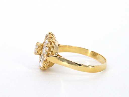 Edelsteen: Natuurlijk; Aantal: 1 stuk; Slijpvorm: Roos geslepen; Kleur: wit; Zuiverheid: Met natuurlijke insluitsels; Slijpkwaliteit: Zeer mooi; Juweel: Ring; Gewicht: 2.9 gram; Ringmaat (op maat gemaakt*): 57 (18 mm); Materiaal: 18k goud (750); Conditie: Zo goed als nieuw; Verpakking: Luxe sieradendoos; Toelichting: De kwaliteit is overgenomen van het rapport behorend bij item. De waardebepaling is een beoordeling van een gecertificeerde diamantair, gebaseerd op consumentenprijzen.; Consumentenprijs: € 1.960,-