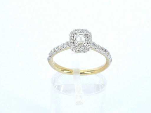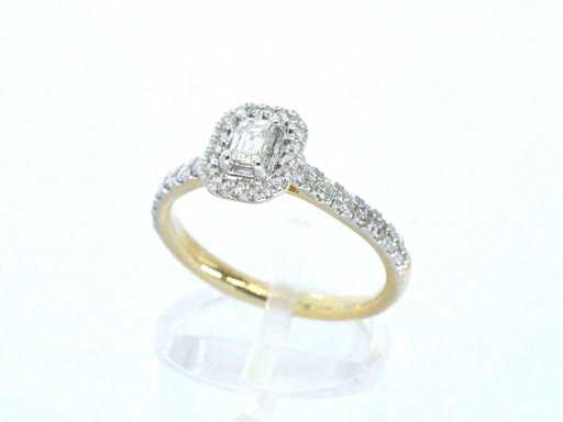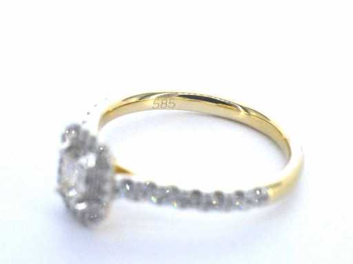 Diamant: Natuurlijk; Slijpvorm: Briljant en baguette geslepen; Gewicht (carat): 0.70 carat; Kleur: F-G; Zuiverheid: VS-SI; Slijpkwaliteit: Zeer mooi; Juweel: Ring; Gewicht: 3 gram; Ringmaat (op maat gemaakt*): 54 (17.25 mm); Materiaal: 14k goud (585); Conditie: Nieuw; Verpakking: Luxe sieradendoos; Toelichting: De kwaliteit is overgenomen van het rapport behorend bij item. De waardebepaling is een beoordeling van een gecertificeerde diamantair, gebaseerd op consumentenprijzen.; Consumentenprijs: € 3.658,-