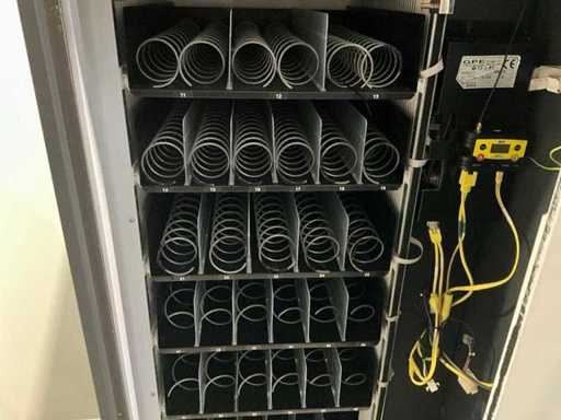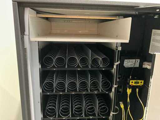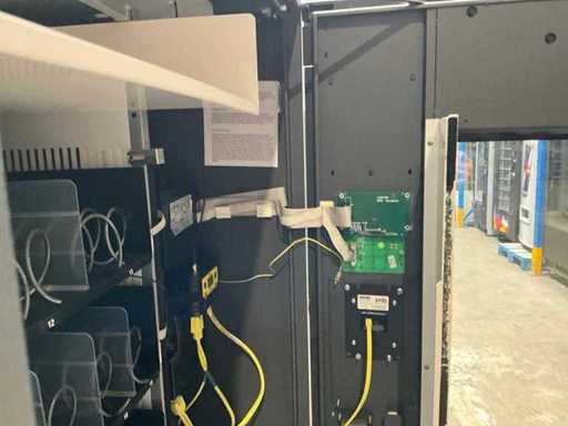 Combi-automaat; gekoeld; incl.Nayax terminal voor contactloos betalen; incl. muntwisselaar; ledverlichting; gebruikte automaat, gebruikssporen aanwezig; 3 frislades, 3 snacklades