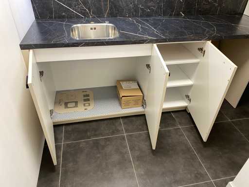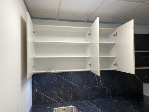 Afmetingen kastenwand circa 200x58x230 cm; reeds gedemonteerd en ingepakt op pallets. (afstapelen, omruilen of statiegeld per pallet); Pallets zijn niet inbegrepen; statiegeld betalen bij afhalen, of pallets afstapelen; werkblad niet ingepakt op pallets (25-GZA-01837)