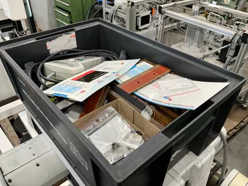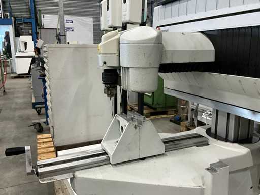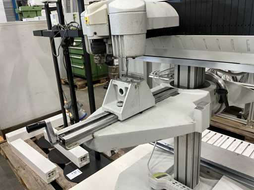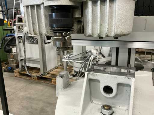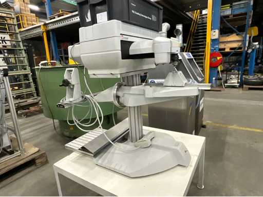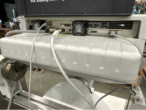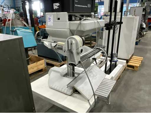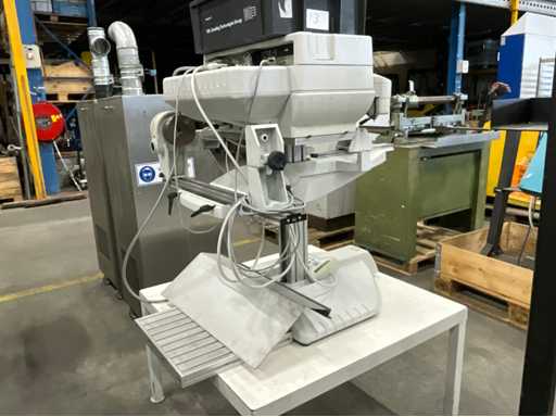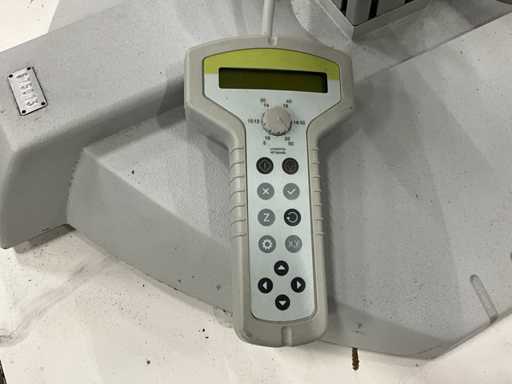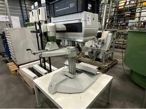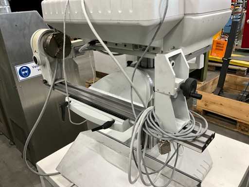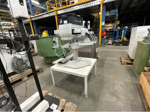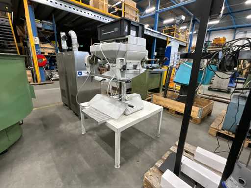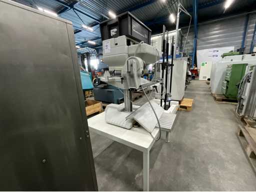 In hoogte verstelbare aanslagtafel,voorzien van handbediende klem; inclusief diverse toebehoren; inclusief ondertafel; totale afmeting van de opstelling