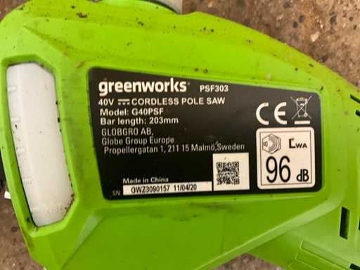 Greenworks G40PSF draadloze kettingzaag met lange stang voor takken