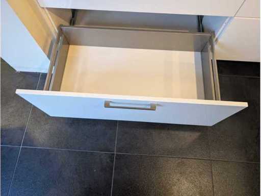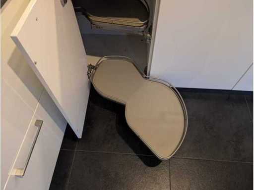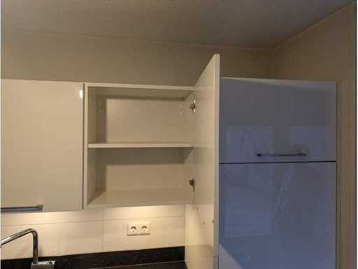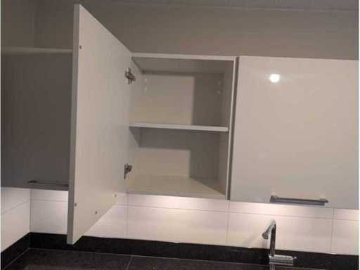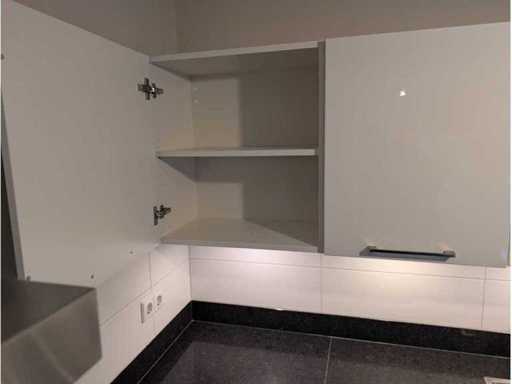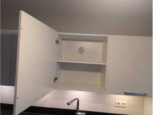 Conditie: gebruikt; afmetingen linkerdeel circa 300x60x93 cm; 275x60x209 cm; afmetingen kastenwand circa 218x60x168 cm; reeds gedemonteerd en ingepakt op pallets. (afstapelen, omruilen of statiegeld per pallet); pallets zijn niet inbegrepen; statiegeld betalen bij afhalen, of pallets afstapelen; werkblad niet ingepakt op pallets (26-2DE-02692)