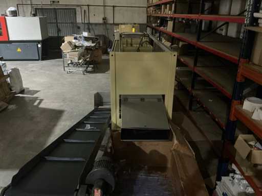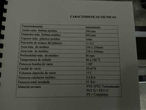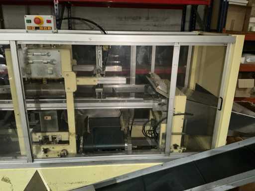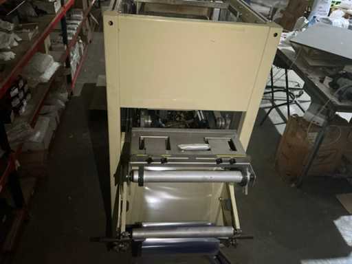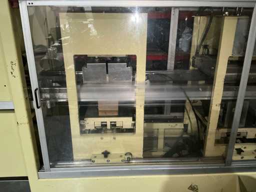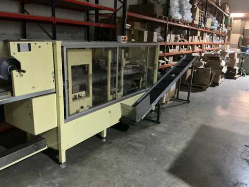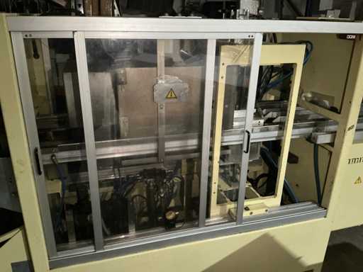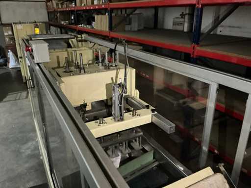 Omvat vorm-, afdicht- en snijstations met bewaakte behuizing en bedieningspaneel voor de bediende. Totaal geïnstalleerd vermogen: 14 kW; persluchtdruk: 6 bar; Koelwaterdruk: 0,5 bar.