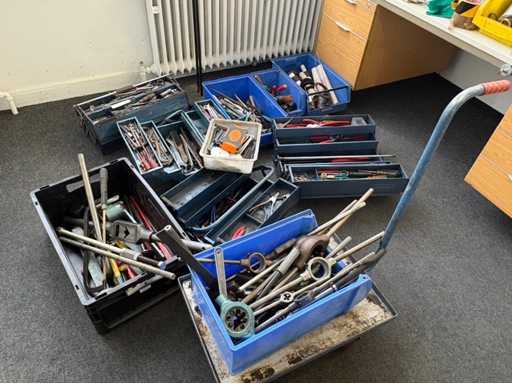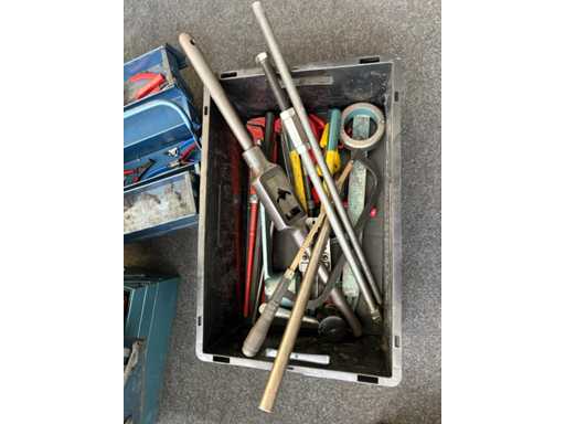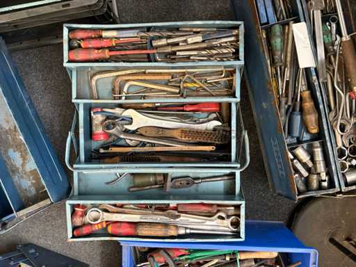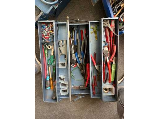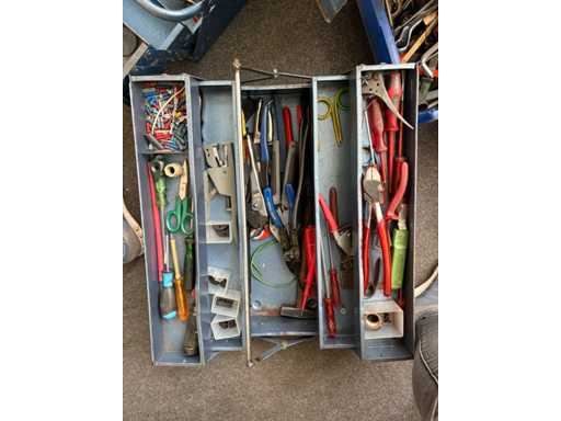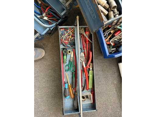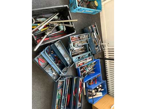 Handgereedschap voor werkplaatsen met gemengde partijen - tangen, moersleutels, snijgereedschappen, gereedschapskisten