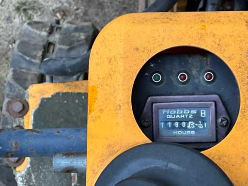 De minigraver is uitgerust met joystickbediening, beschermrek en een dieselmotor (typeplaat niet zichtbaar). Ideaal voor bedrijven of particulieren die een compacte en wendbare machine zoeken voor uiteenlopende klussen. De machine is visueel gebruikt en toont sporen van slijtage, maar vormt nog een degelijk basisplatform voor renovatie of dagelijks werk.