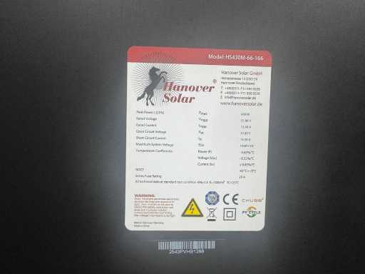 set van 8 full black zonnepanelen (430 wp) bestaande uit: afmeting panelen: 1932x1038x30 mm. merk: Hanover Solar type: HS430M-66-166 totaal vermogen: 3.440 Wp vermogen: 430 Wp per zonnepaneel conditie: nieuw