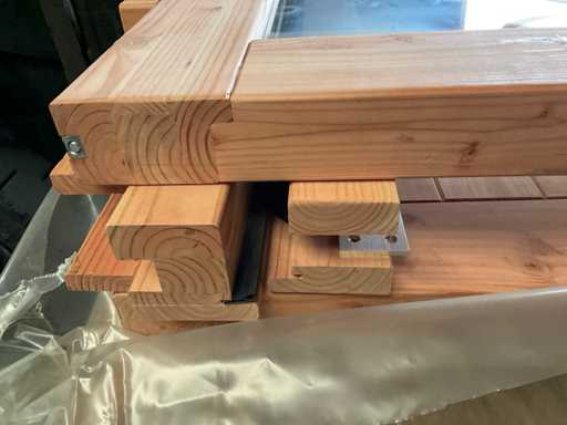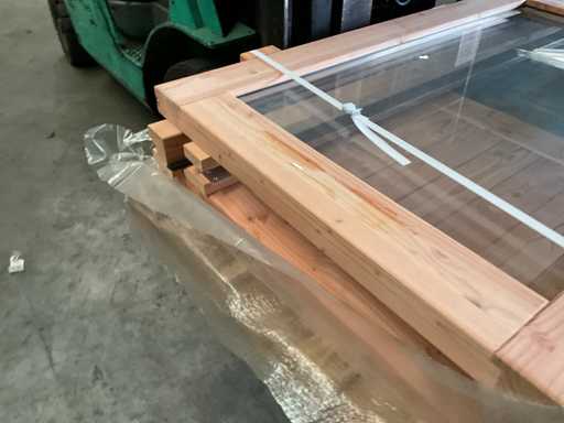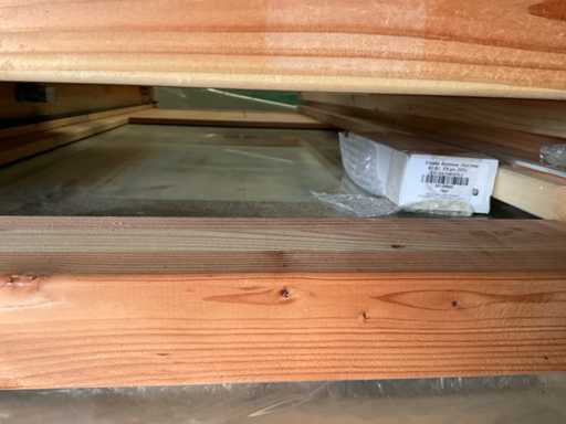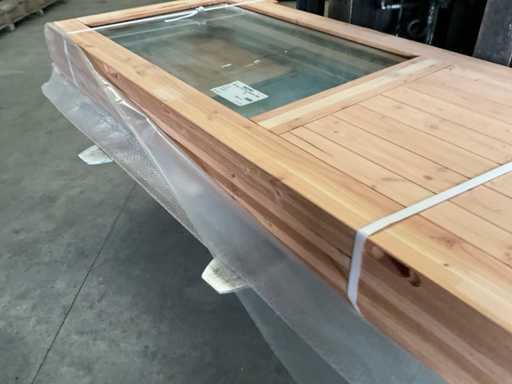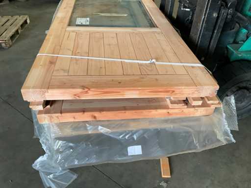 Hillhout deur in kozijn 186x202 cm, inclusief hang en sluitwerk. Zie de foto's voor meer details.