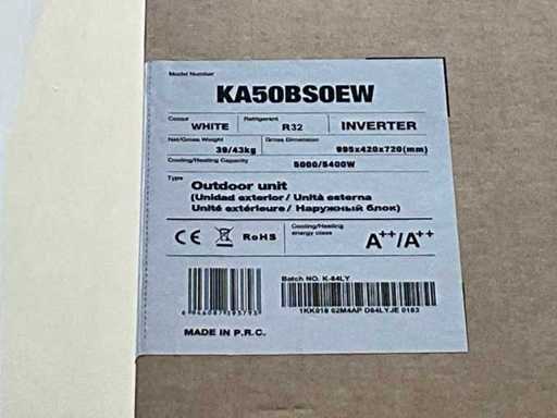 Bestaande uit type KA50BS0EW buitenunit en KA50BS0EG binnenunit (wandmodel) ongebruikt in doos