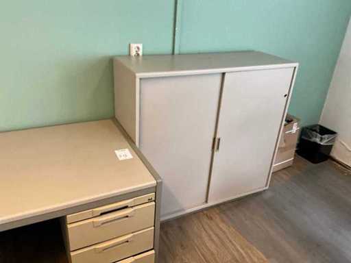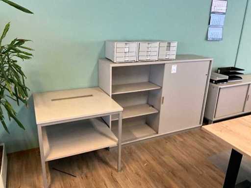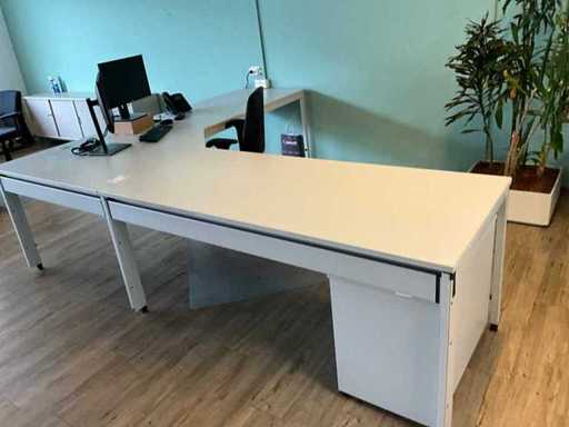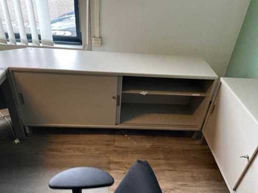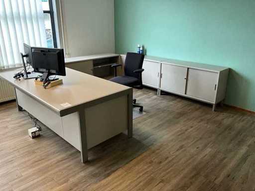 Inclusief 2x bureau Afmetingen 200x100x78cm. 3X archiefkast 6X archiefkast, 3x Dell monitor 1x HP monitor, 2x bureaustoel