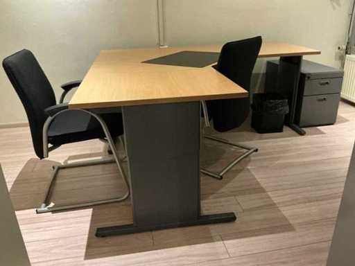 Inclusief 2x jaloeziedeurkast 80x49x164 cm, 1x ladenblok, 2x bureaustoel