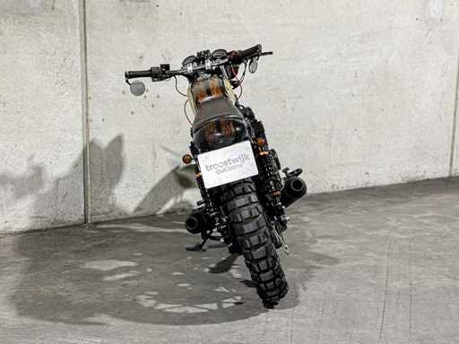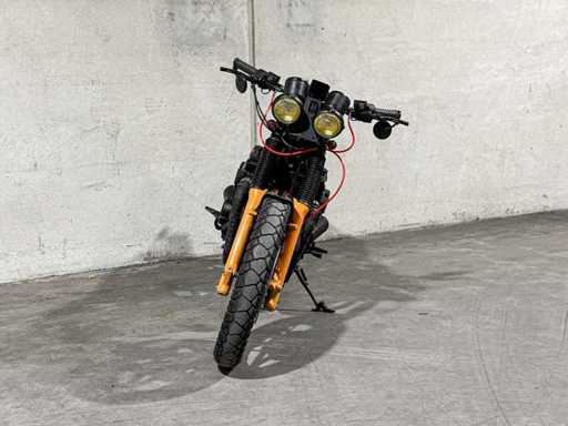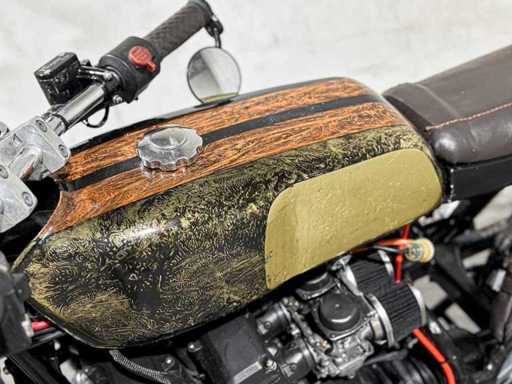 Opnieuw opgebouwde Honda cb550 een mix tussen caferacer en scrambler.