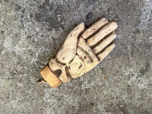 De handen van de rechter soldaat zijn beschadigd zoals zichtbaar op de foto's bij dit kavel.