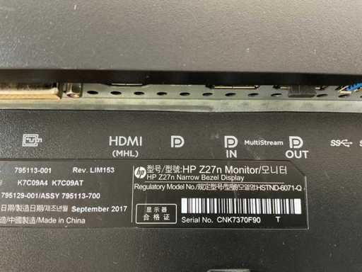 HP (Z27n) 27”, 2160x1440 (QHD) IPS Monitor