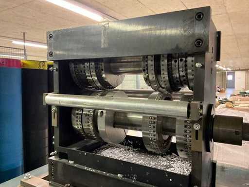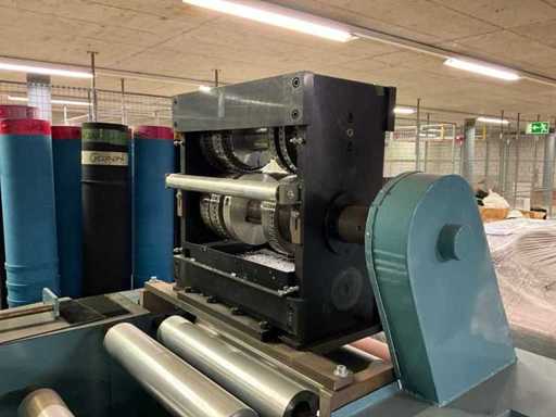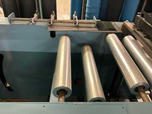 HS-M Maschinentechnik Unwinder, type ABWS 520-1300, bouwjaar 1997, machine nr. 97271, bedrijfsspanning 400 V / 50 Hz, aansluitbelasting 2,5 kW. Zwaar stalen frame met rolband voor het verwerken van walsgoed (bijv. folie/webben);