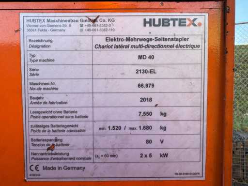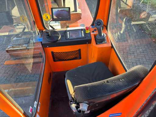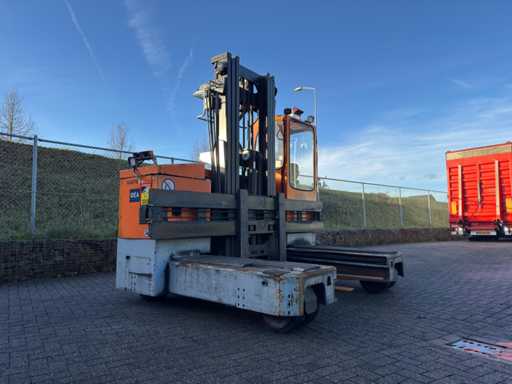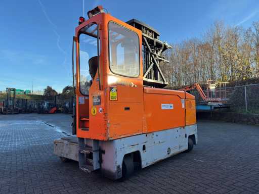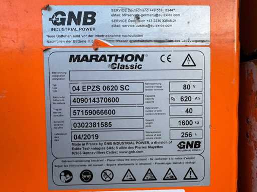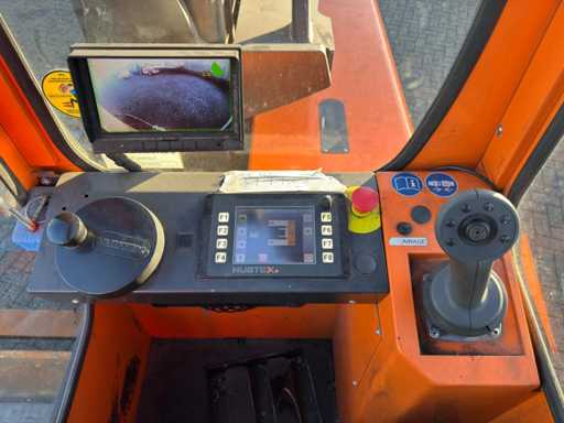 Voorzien van: werklampen, gesloten cabine, achteruitrij camera, joystick bediening, touch-screen, marathon accu, draagvermogen 4000 kg, breedte 1040 mm, hefhoogte 7000 mm, hoogte in gesloten toestand 3457 mm, vrije hefhoogte 2407 mm, 80V 4 PzQ 620 Ah / Bj 2019, mast: Triplex, volrubber banden, multidirectionele besturing, hydraulische vorkbreedteverstelling.