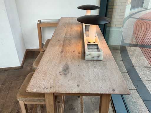 Bartafel met marmeren opbouw en verlichting. Afmeting barkrukken: 37x37x75 cm.