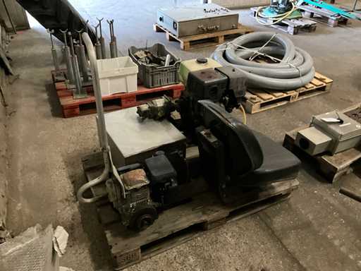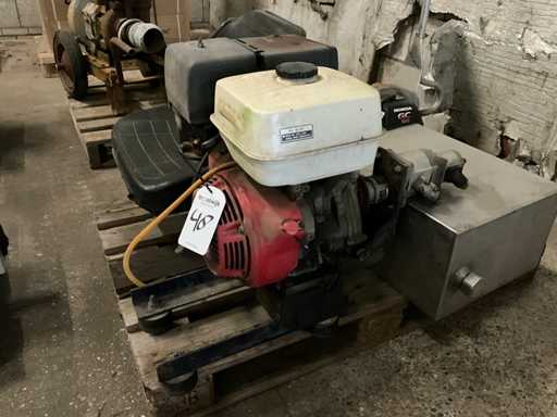 Bestaande uit “Honda” GX390 (13PK) benzinemotor en RVS olietank met afsluiter; inclusief “Honda” GC 190 benzinemotor en stoel met frame