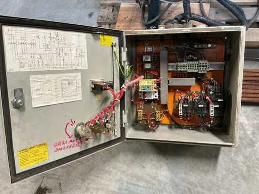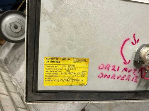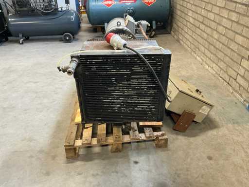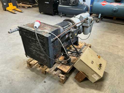 Voorzien van: schakelkast, urenteller, koeler, 1500Ltr/min, 9,5Bar, 15Kw, 380v.