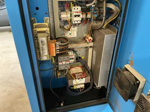 Voorzien van: volledige werkende schotten compressor, noodstop, documentatie, frequentie geregeld.