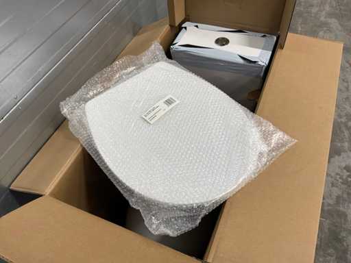 Set bestaat uit: staand closet H/PK, reservoir en softclose zitting. Rimless. Inclusief bevestigingsset
