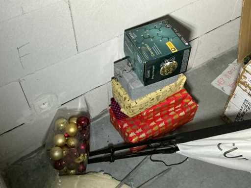 Compleet met in hoogte verstelbare bureautafel 160 x 80cm, 1 imitatie Kerstboom en enige diverse Kerstballen,