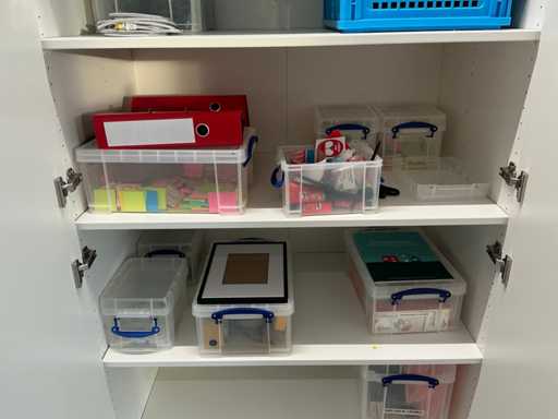 Inclusief inhoud, divers kantoorgerief, lectuur, klusbenodigdheden, kabels etc. Eventueel aanwezige administratie dient achter te blijven.