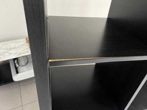 Grote KALLAX vakkenkast met 16 vakken. Kan zowel als wandkast of als roomdivider gebruikt worden. Gebruikte staat, lichte gebruikssporen zichtbaar (zie detailfoto rand).