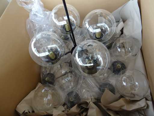 kleur: black matt; aantal lichtbronnen: 12; inclusief 5 x reserve glazen bollen; afmeting: 120 x 100 cm (hxdia)