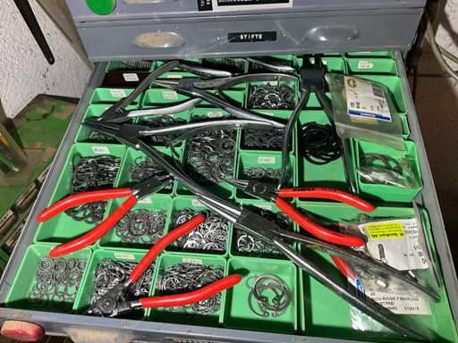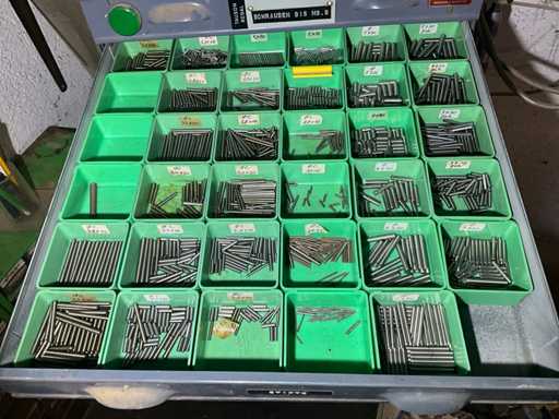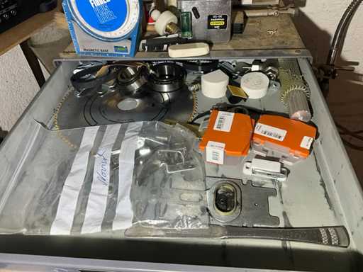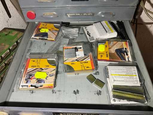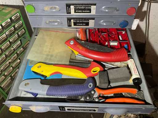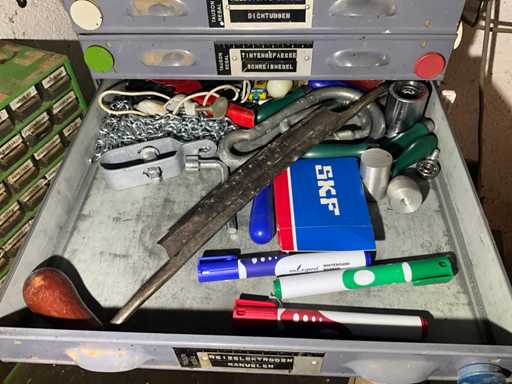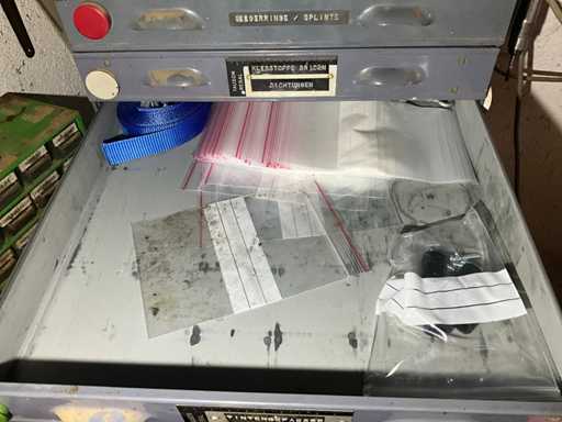 Met 7 lades, inclusief materiaal op de doos, gewicht geschat ca. 15 kg, zie foto's voor meer details