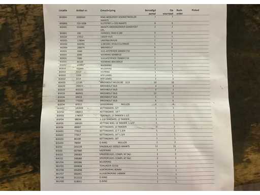 Partij Imants onderdelen afkomstig van overtollige dealer voorraad, lijst met onderdeelsnummer vermeld