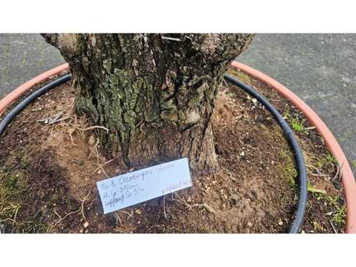 Breng mediterrane flair in uw tuin met deze prachtige olijfboombonsai. Op een indrukwekkende hoogte van ongeveer 310 cm lang met een karaktervolle, knoestige stam (omtrek ca. 90 cm), is dit exemplaar een absoluut pronkstuk voor elke luxe buitenruimte. De fijn afgestelde bonsaivorm en dichte, zilvergroene bladeren zijn het resultaat van jarenlange vakkundige teelt. Deze Olea europaea is winterhard en staat voor een tijdloos symbool van uithoudingsvermogen en vrede.
