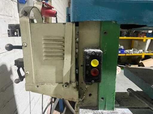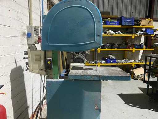 Verticale bandzaag met kantelbare tafel. Riemaangedreven motor.
