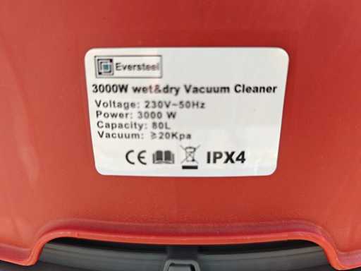 Professionele nat en droogzuiger, 80 liter 3000 watt, 3 motoren incl. toebehoren, ongebruikt in doos