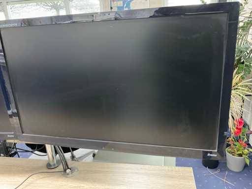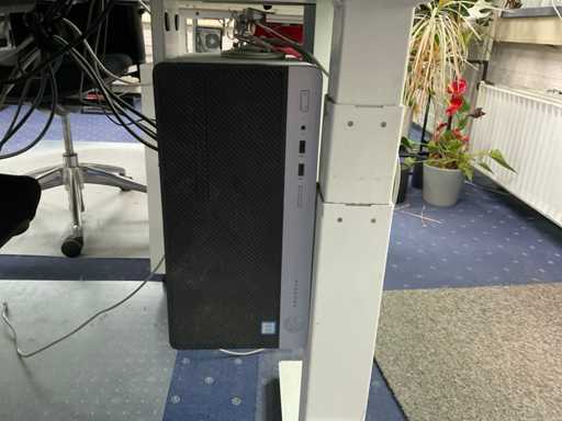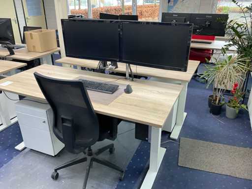 Bestaande uit: (1×) elektrisch in hoogte verstelbaar bureau (180x80 cm) (1×) mobiele bureaustoel (1×) mobiel ladenblok met inhoud. (1×) desktop PC met Intel i5-processor, Ghz (2×) Iiyama monitoren, 27 inch