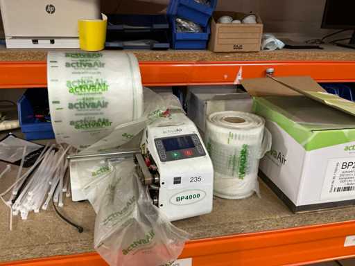 Bestaande uit ActivaAir BP4000 luchtkussenmachine, 2x Zebra ZD420 labelprinter, HP printer, 2x Dell monitor, Divers verpakkingsmateriaal. Dit kavel dient leeg opgeleverd te worden. Zonder de stelling.