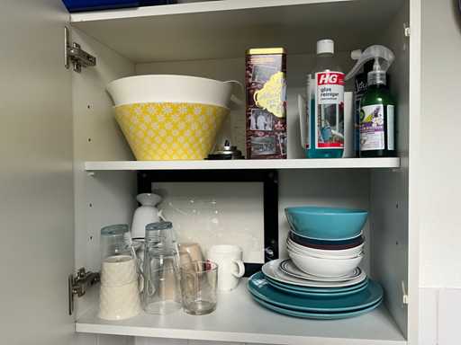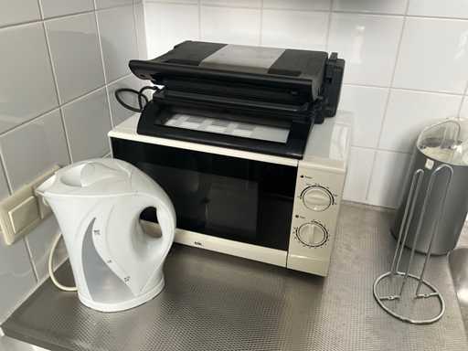 Bestaande uit OK magnetron, Princess tosti-ijzer, waterkoker, servies, glazen, etc.