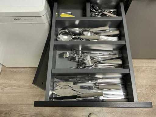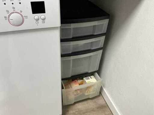 Bestaande uit een Bosch tafelmodel koelkast, Borg&Overstrom waterdispenser, Bosch vaatwasser, servies, bestek, magetron, Airfryer, kapstok. Vaste keuken delen niet inbegrepen.