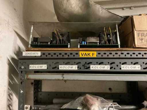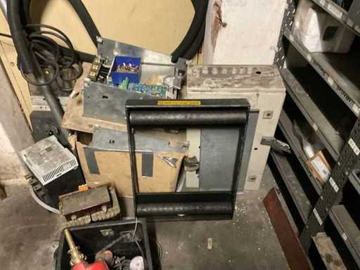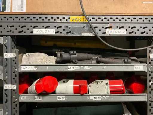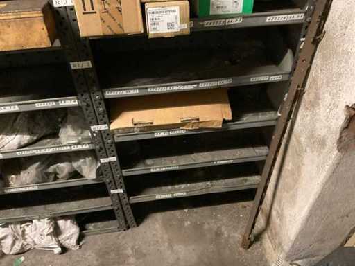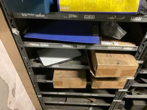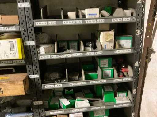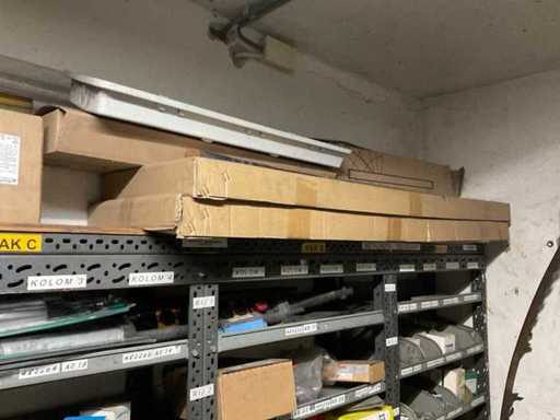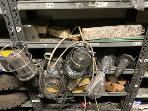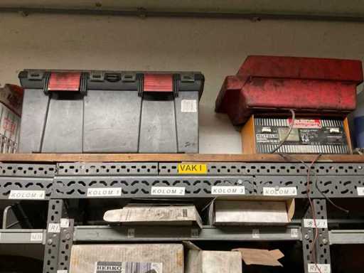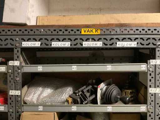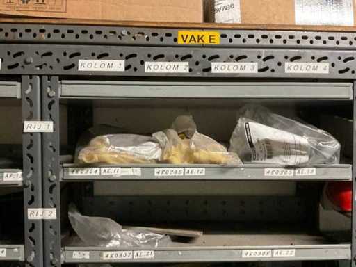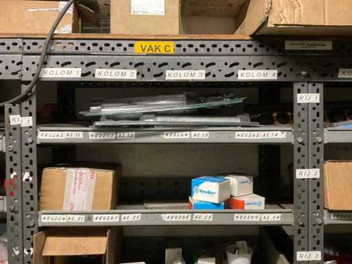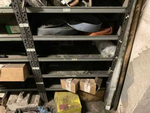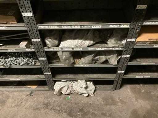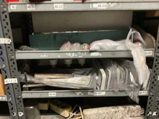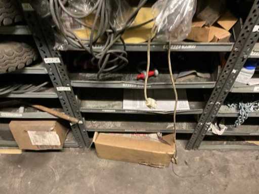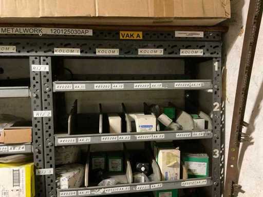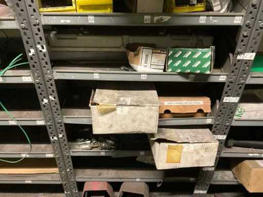 Inhoud ruimte bestaande uit o.a, spanbanden, elektra materiaal, bevestigingsmaterialen, meters, machinetoebehoren, speciaal gereedschap, handgereedschap etc, in en inclusief stellingen.