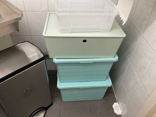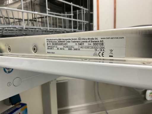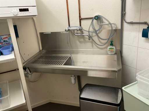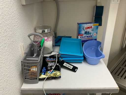 Inhoud ruimte bestaande o.a uit Siemens SK26E222EU/01 tafelmodel vaatwasser, RVS spoelbak 110 x 48 cm, prullenbak en handdoekdispenser, koper dient dit kavel zelf te demonteren, er zijn geen hulpmiddelen aanwezig. Kraan niet inbegrepen.