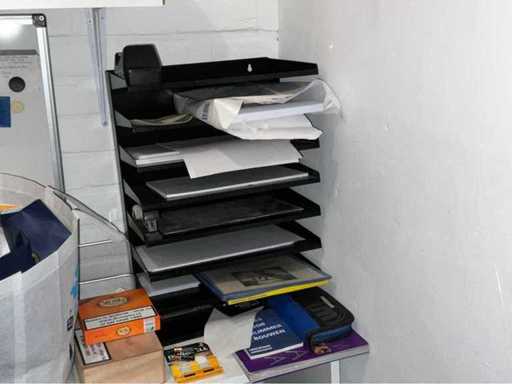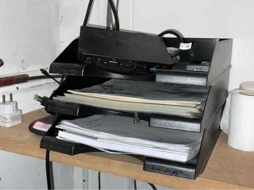 waaronder Brother DCP-J562DW printer; Samsung TFT monitor; monitor Iiyama; toetsenbord; ladenblok; shredder Fellowes 58-97Cs; zijnde de complete inhoud van het kantoor links;
