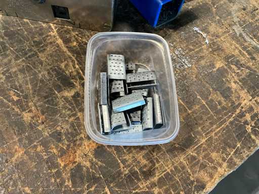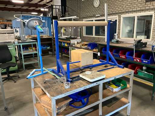 Voorzien van diverse verpakkingsmaterialen, rolhouder, straptang met clips en divers