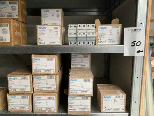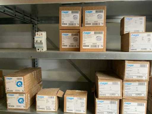 waaronder: :hager installatie automaten, groepenkasten diverse uitvoeringen, 4 optische rookmelders, Vision groepenverdelers. verdeeld over 10 vakken