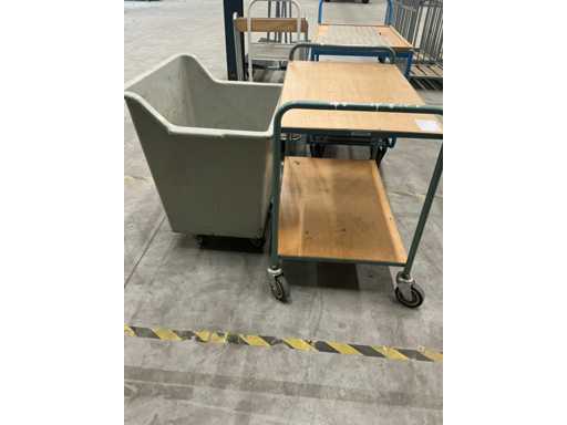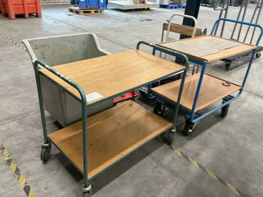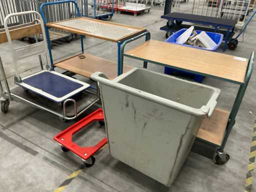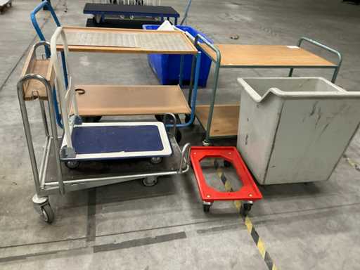 Bestaande uit 2x etagewagen, 1x mobiele bak, 1x krattenhondje en 2x plateauwagen duvers